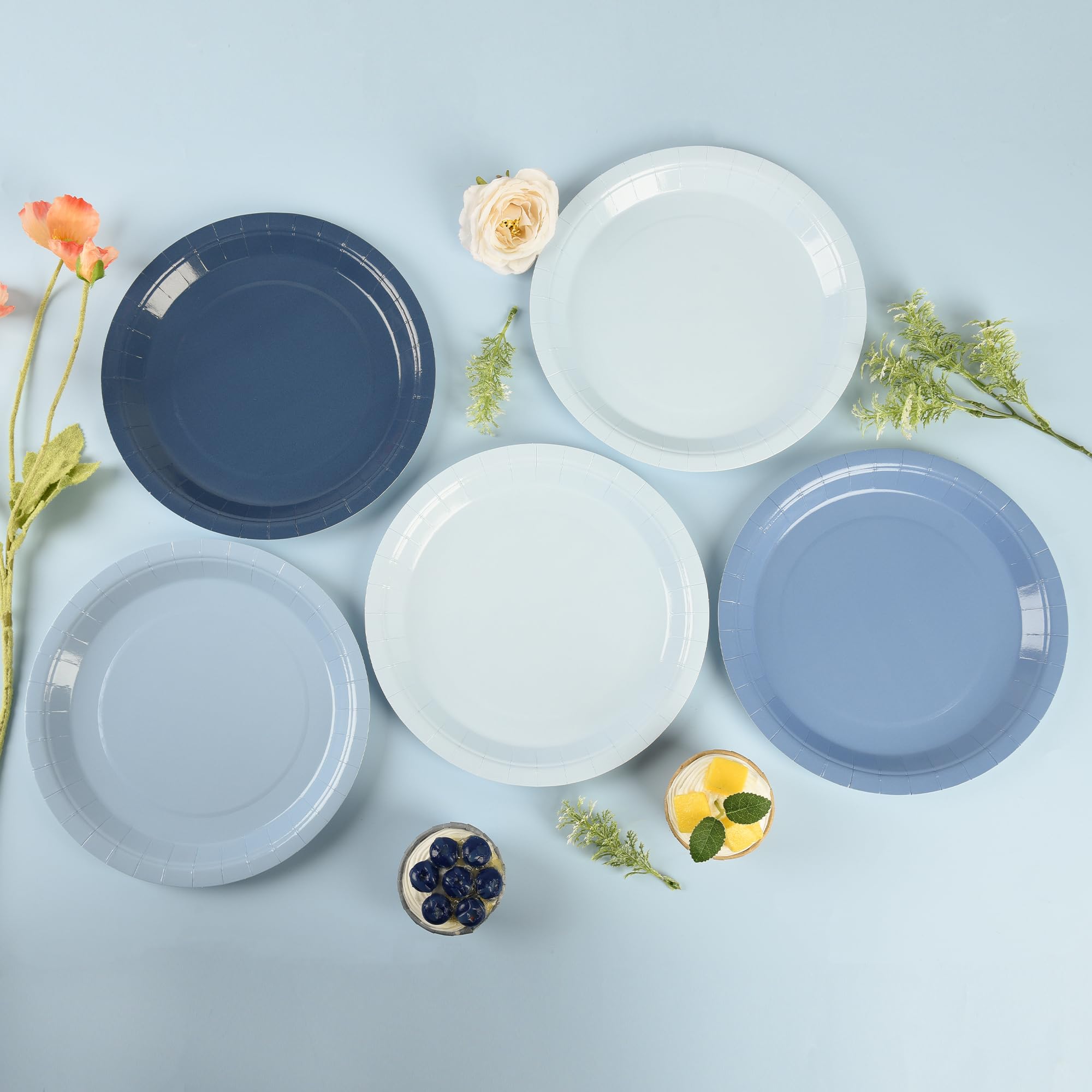 - Dusty Blue Decorations: These dusty blue paper plates feature cute and decorative colors that adds a cheerful touch to your table setting, perfect for any celebration or event where a pop of color is needed, making your festivities more memorable.