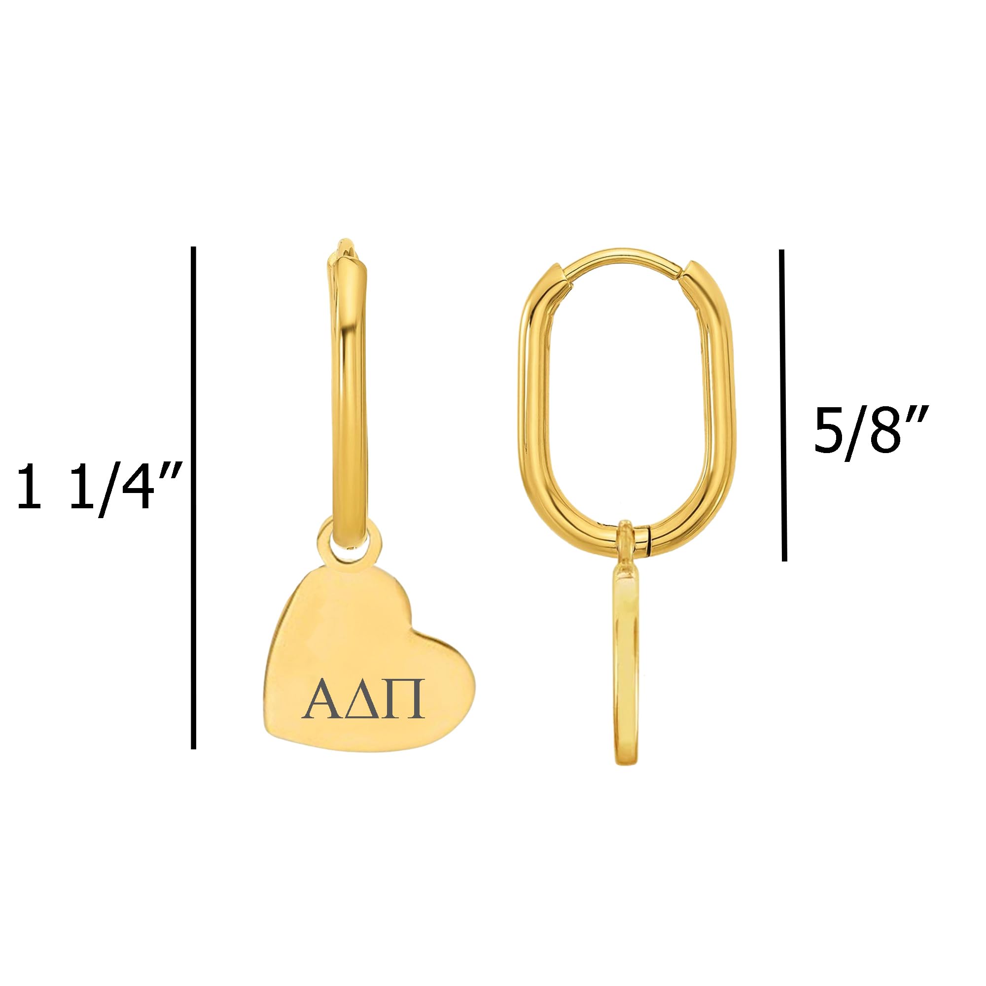 - Sorority Huggie Hoop Earring Detail: Sorority huggie hoop diameter: 16mm, Heart charm diameter: 17mm