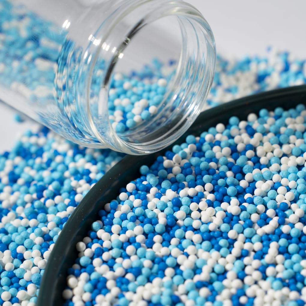 Blue Edible Pearl Sprinkles for Cake Decorations, Baking, Ice Cream, Cookies, Cupcake Topper 2mm White Sugar Pearls for Cake Decorating 130g/4.6oz 1 Bottle (2mm blue light blue)