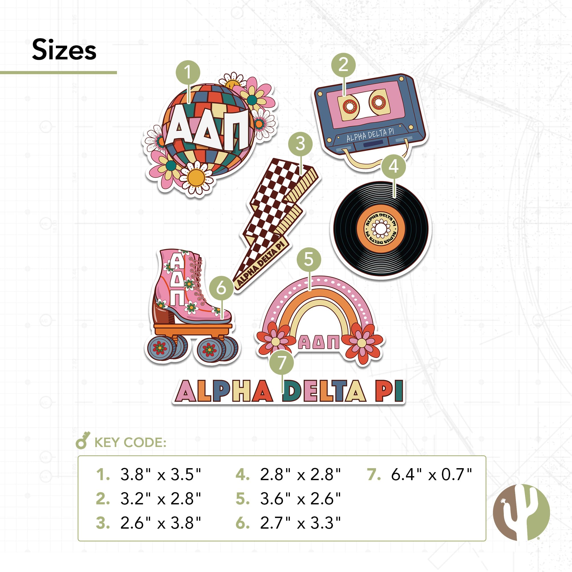 Desert Cactus Alpha Delta Pi Sorority Sticker Sheet Decal Laptop Water Bottle Car ADPi (Retro Sheet)