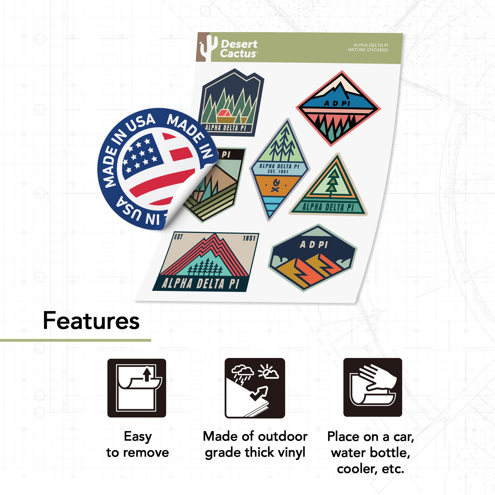 Desert Cactus Alpha Delta Pi Sticker Decal Greek Decal for Window Laptop Computer Car (Nature Sheet)