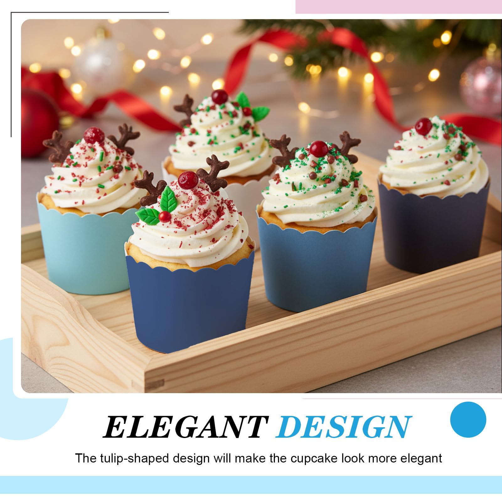 - 250 Pcs Paper Baking Cups: our paper baking cups are made from optical brightener free and non toxic virgin wood pulp that ensures their sturdiness; They can hold their shape well during baking, providing support to your cupcakes or muffins; They come in a charming blue series with five