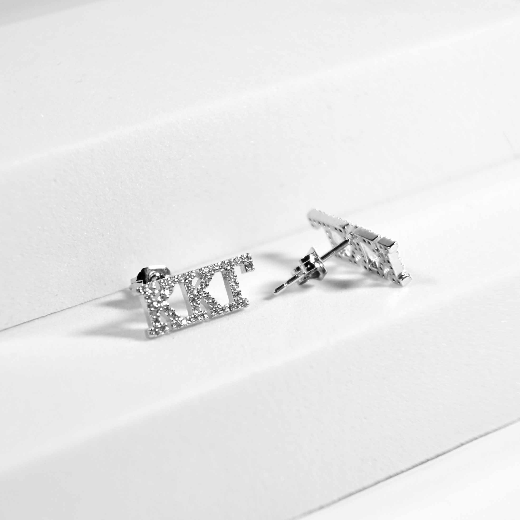 - STUD EARRING DESIGN – Our white gold-dipped Alpha Delta Pi earrings are designed to make a statement. The Cubic Zirconia (CZ) studded sorority Greek letter earrings provide a unique look.